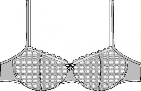 Idealer BH für kleine Größen Zweigeteiltes Cup mit Vertikalnaht kleines Mittelteil komplett aus Wäschestoff gearbeitet zusätzlich mit Spitze belegt Unterfütterung mit Schaumstoff sorgt für Stand aufwändige Trägerverarbeitung Verzierung mit Satinbändchen Amelie 2 beinhaltet die Größen: 70A, 70B, 70C 75A, 75B, 75C 80A, 80B, 80C 85A, 85B Materialverbrauch: Wäscheware : 0,30m Spitzenband: 0,75m Powernet: 0,10m x 1,80m oder 0,20 x 0,80m Schaumstoffeinlage 2,5mm dick: 0,35m x0,20m BH - Bügel 1 Paar Einfassband: 1m 0,80m Bügelband 1 Verschluss 1,20m Trägerband inkl. Versteller 2m Ziergummi 1,50m Unterbrustgummi 0,60m Einziehgummi