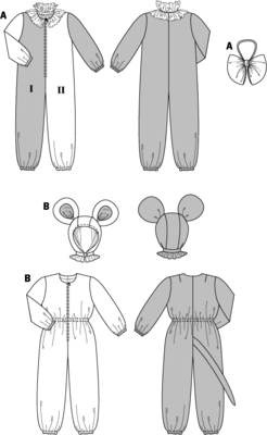 B mit separater Kapuze und großen Ohren.