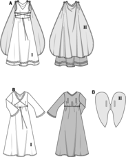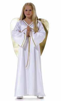 Kleid B für den Engel, mit langen, ausgestellten Ärmeln, ist mit Goldborte verziert.