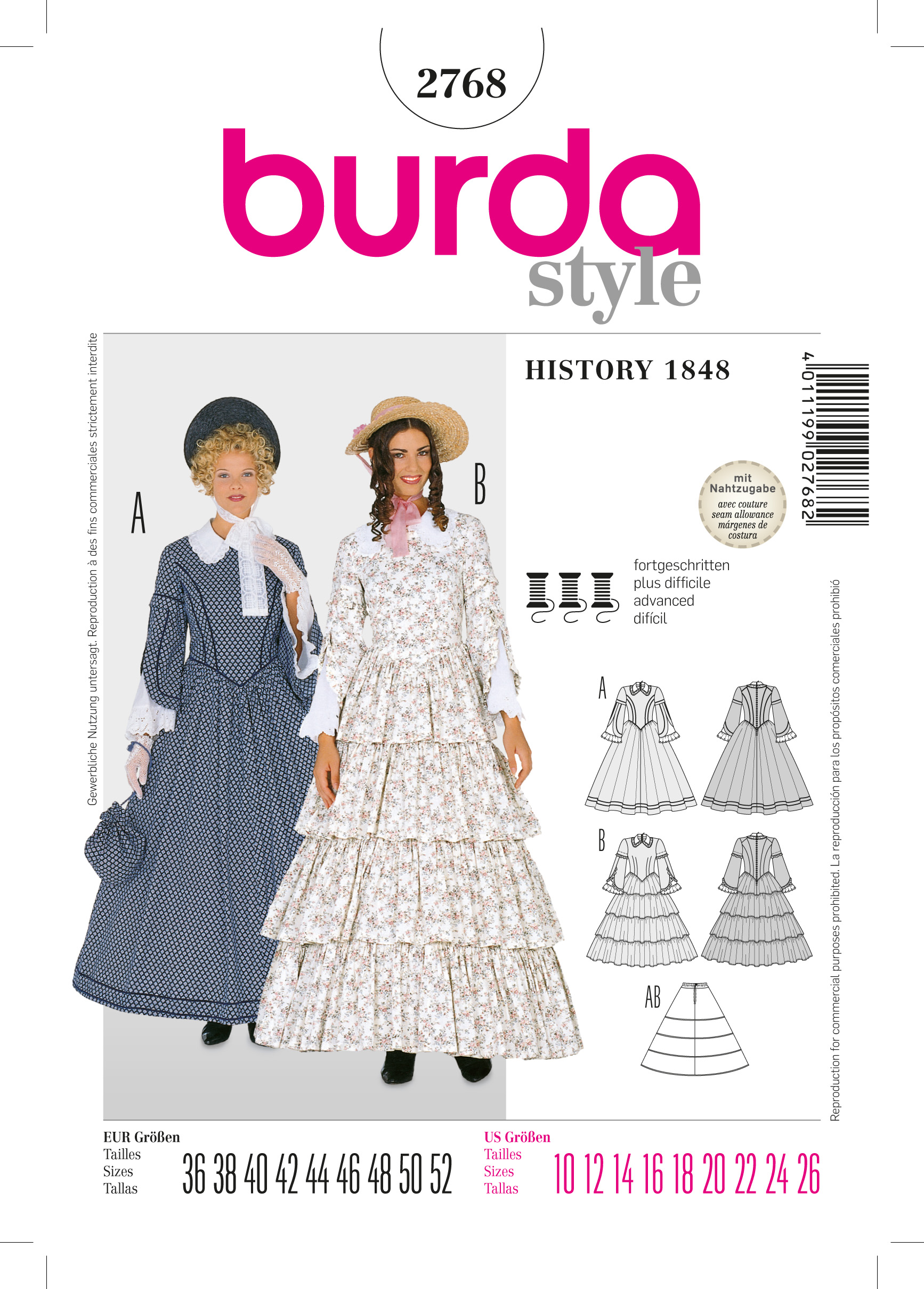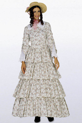 Kleid mit Reifrock im Biedermeier-Stil. Bevorzugen Sie das schlichtere Kleid A mit Samtbändchen... mehr