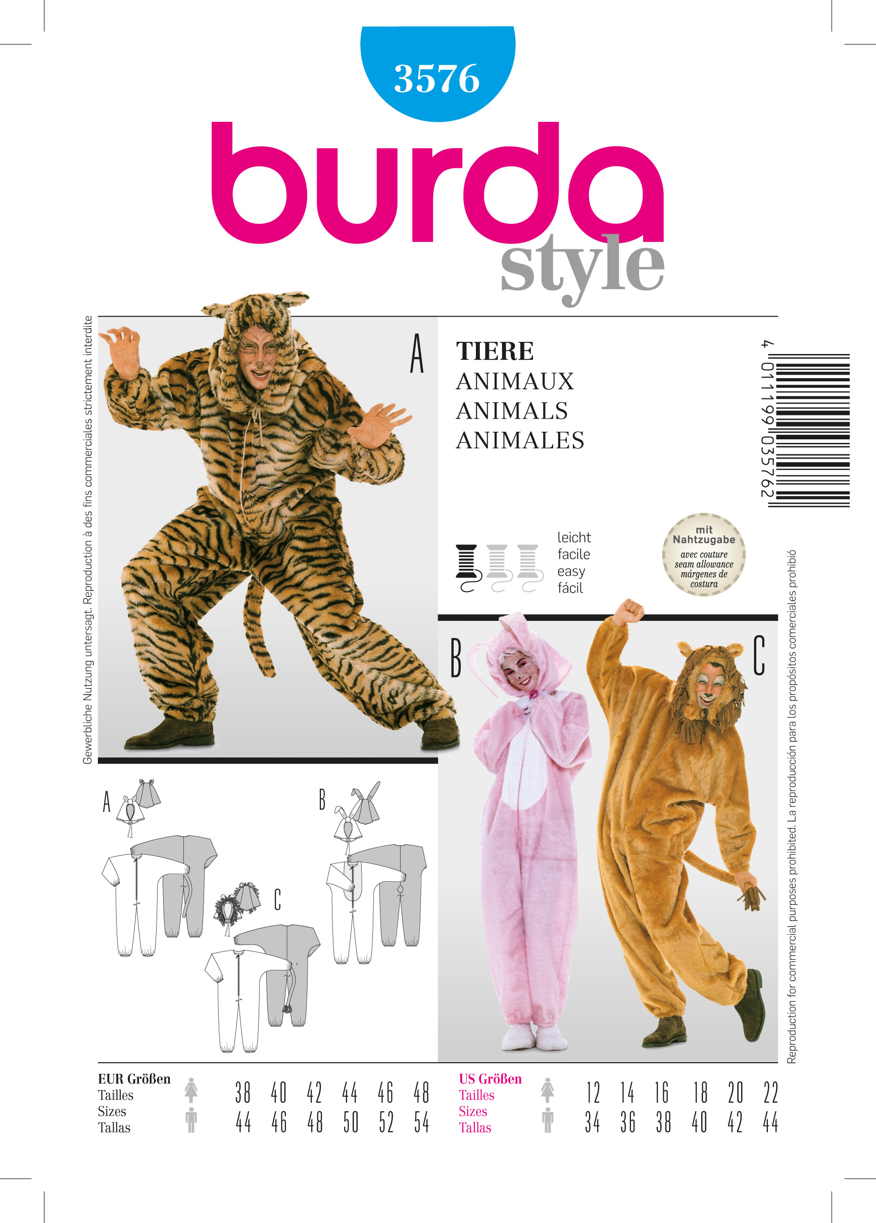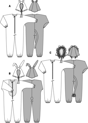 Dazu separate weite Kapuze für Wildkatze, Löwe bzw. Hase