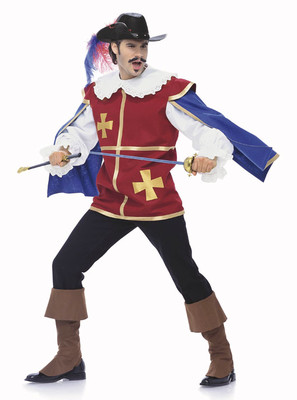 Bei Musketier B bekommt die Tunika einen großen weißen Kragen und üppige Rüschenärmel, darüber effektvoll die geschlitzten Ärmel mit Bändern verziert.