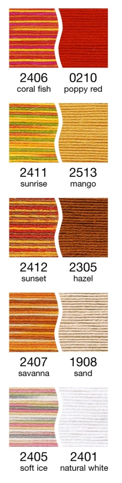Aussergewöhnliche Effekte entstehen, wenn die Cotona No.4, Decora No.6 und Glamour No.8 abwechselnd miteinander verarbeitet werden.