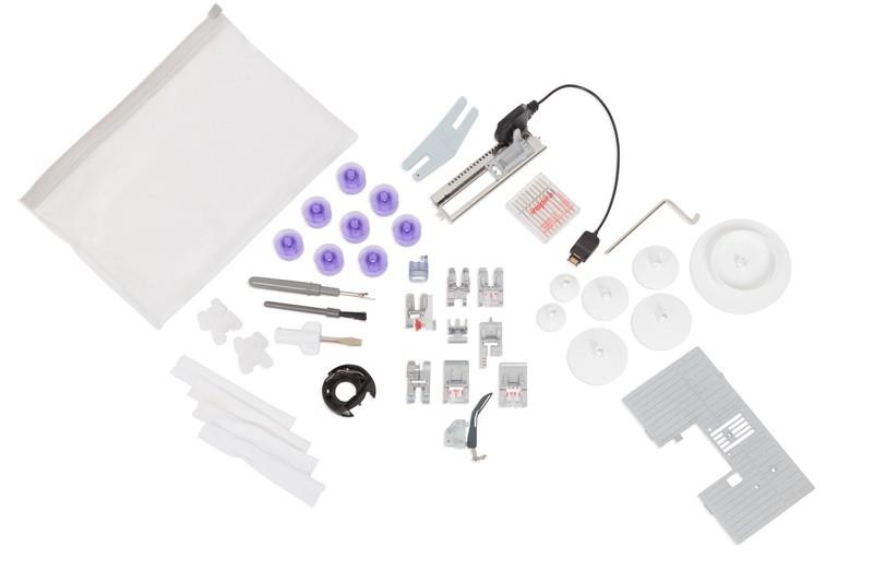 Dies ist besonders hilfreich bei Metallicgarnen. Eine reichhaltige Auswahl an Stichen ist natürlich ebenfalls enthalten, besonders die exklusiven Stichtechniken wie Bänderstiche oder Ziergleitstiche machen jedes Nähprojekt zu einem Meisterwerk.