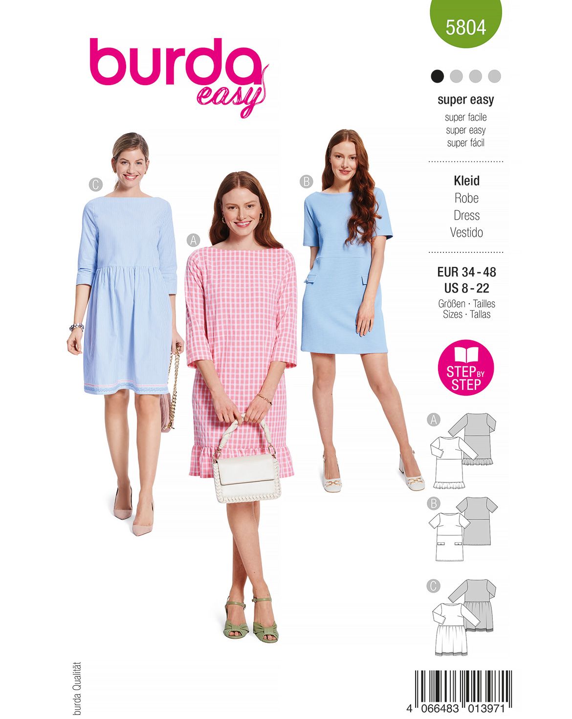 Schnittmuster Kleid Grösse: 34 - 48 Das vielseitige Kleiderschnittmuster-Set bietet viel Raum... mehr