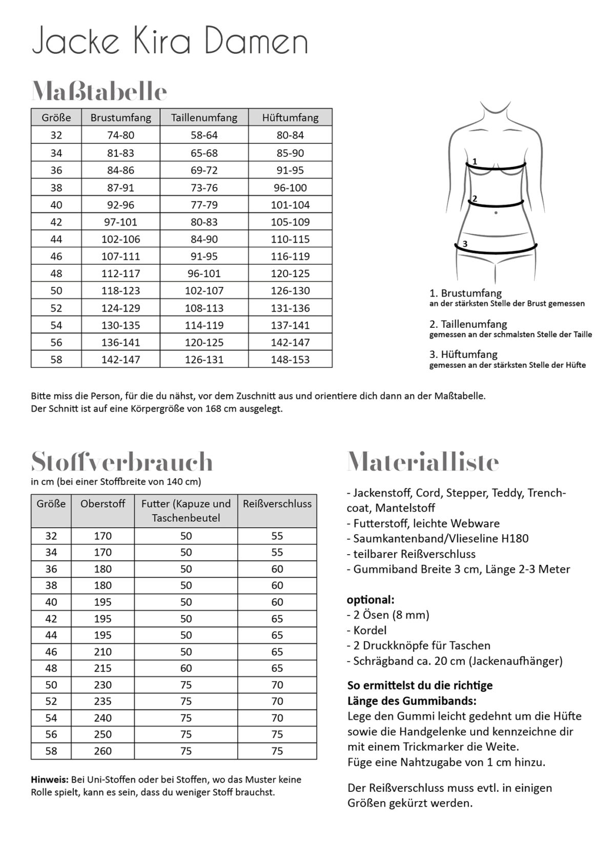 Schnittmuster Jacke Kira Damen