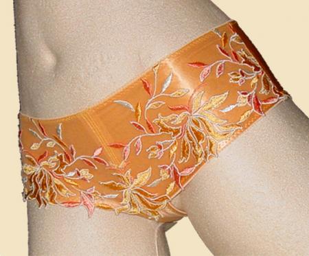 Vorder - und Hinterhose des Slips sind aus Mikrofaser - Breitware angefertigt Stringeinsatz aus elastischer Wäscheware Vorderhose zusätzlich mit Spitze belegt Das Schnittmuster beinhaltet die Größen: 32 - 38 Materialverbrauch: Spitzen-oder Mikrofaserband: 0,90m 1 Stück Wäscheware 0,70m x 0,70m Ziergummi: 2,10m