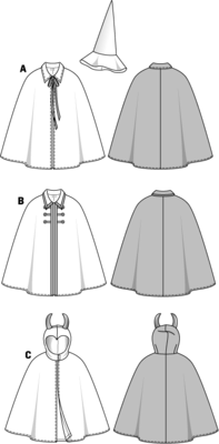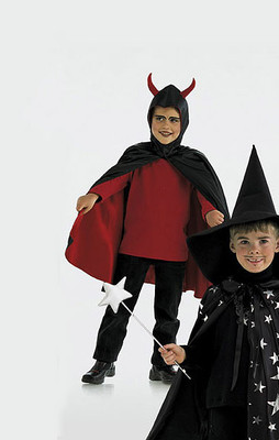 C (Teufel) Cape gedoppelt, mit Kapuze und Hörnern.