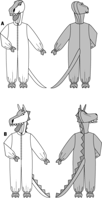 Overall, sehr weit, mit aufwändiger Tierkapuze als Dino oder Drache.