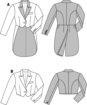 A Klassischer Damenfrack oder als Variante B kurzer Bolero. Stoffempfehlung: Lurexstoffe,... mehr