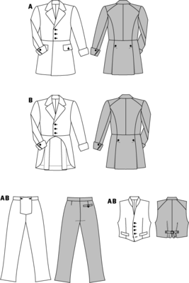 Stilechter Anzug für den Biedermann. Egal ob lange Jacke A oder Jacke mit Frackschößen B. Dazu... mehr