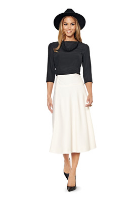 Sieben leicht ausgestellte Rockbahnen und der Formbund ergeben Rock A in knieumspielter Länge.... mehr