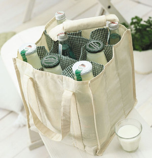 G: Praktischer Flaschenträger (Flaschentasche) mit Innenstegen, zwei Henkeln und Platz für neun Flaschen.