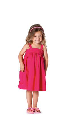 Bei Kleid A mit dekorativen Taschen sind die Träger zum Festknöpfen.