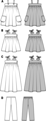 Drei schicke Trägerkleidchen in unterschiedlichen Längen, alle mit Knopfverschluss an der Passe und eingereihtem Rock mit viel Schwung.