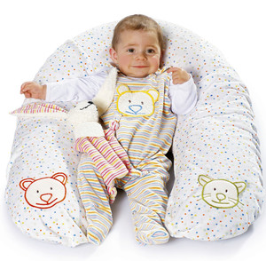 Jetzt kann das Baby kommen! Schlafsack, Badetuch, Stillkissen, Lätzchen und Kuscheltier (Hase) sind bereits gerichtet.