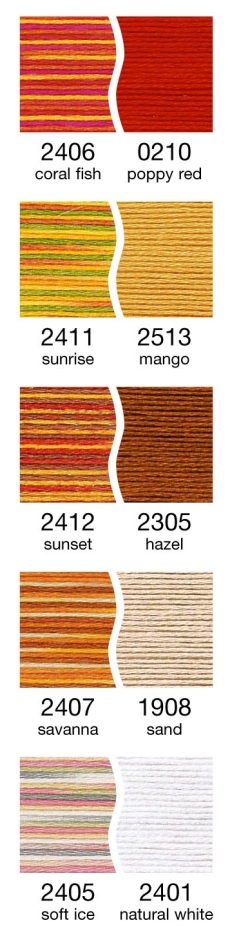 Aussergewöhnliche Effekte entstehen, wenn die Cotona No.4, Decora No.6 und Glamour No.8 abwechselnd miteinander verarbeitet werden.