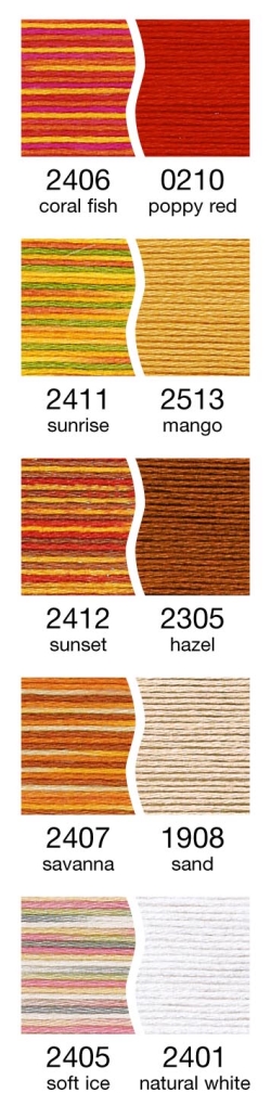 Aussergewöhnliche Effekte entstehen, wenn die Cotona No.4, Decora No.6 und Glamour No.8 abwechselnd miteinander verarbeitet werden.