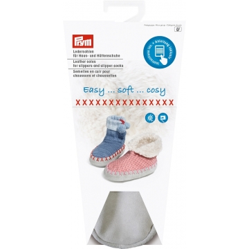 Innen ist die Sohle mit einem weichen Plüschstoff gefüttert, der zusätzlich für ein angenehmes Kuschelerlebnis sorgt. Neben den Ledersohlen enthält die Verpackung ein Schnittmuster für drei Schuhgrößen – insgesamt sind die Ledersohlen für die Schuhgrößen 18 bis 41 erhältlich.