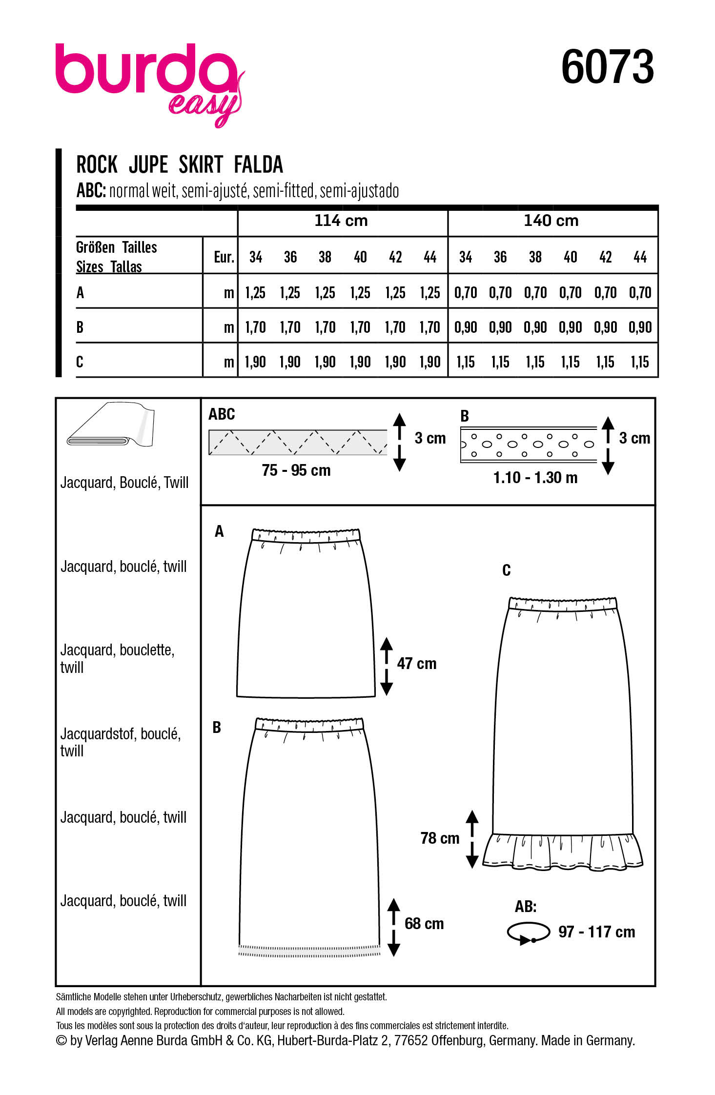 Stoffempfehlung: Jacquard, Bouclé, Twill.