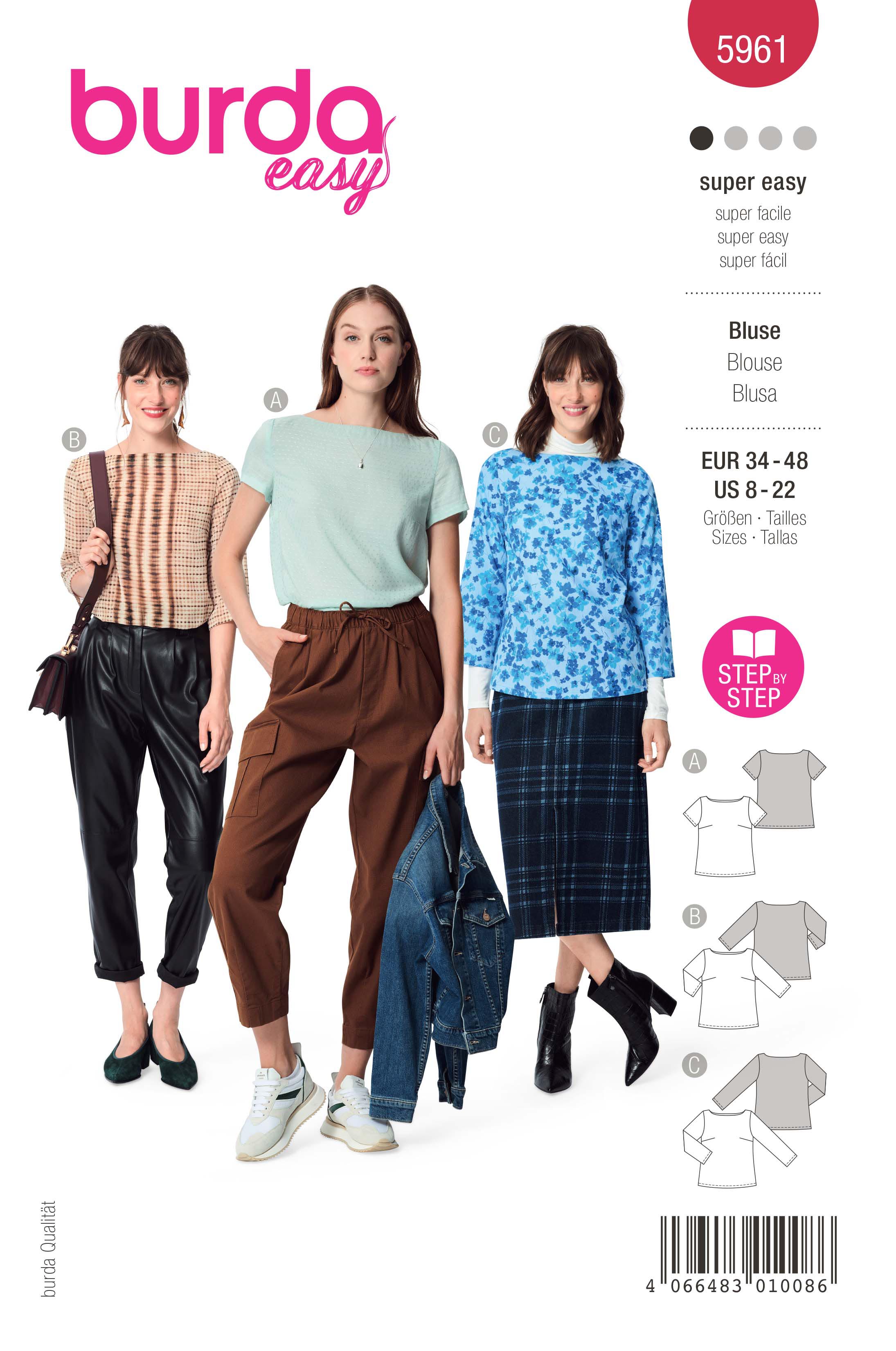 Schlichte Blusen mit Abnähern, flachem Ausschnitt und mit drei verschiedenen Ärmellängen. Da ist für jeden was dabei.