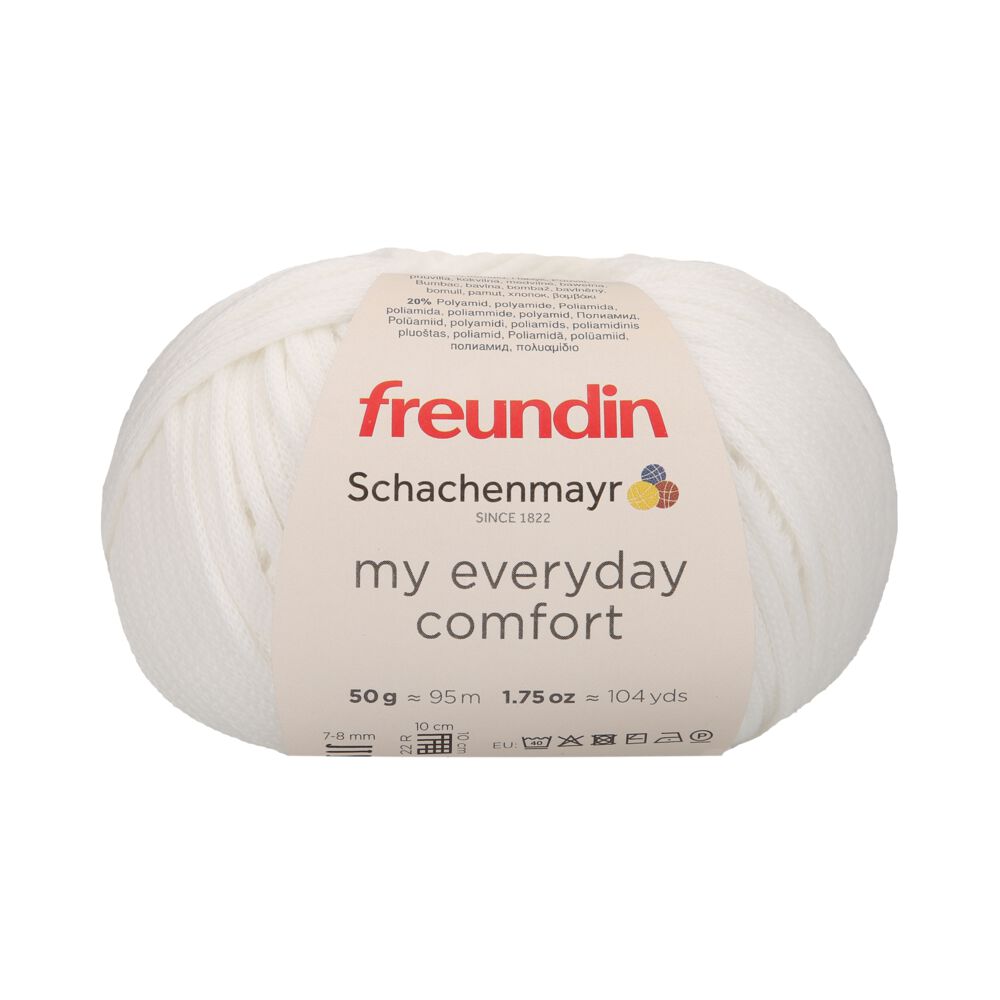 Gemütlichkeit an jedem Tag, das ganze Jahr über das verspricht my everyday comfort! Dieses runde Schlauchgarn aus Baumwolle ist gefüllt mit einem Polyamidkern und sorgt so für maximales Volumen bei absoluter Leichtigkeit. Einfache Strukturmuster aber auch Patentmuster kommen bei diesem Garn besonders schön zur Geltung und selbst glatt rechts gestrickt erhält man ein sehr schönes Strickergebnis.Ideal geeignet für sportliche, gemütliche Oberbekleidung im Sweatshirt Look aber auch für Kindermodelle und Homedeko Projekte, ob gestrickt oder gehäkelt.