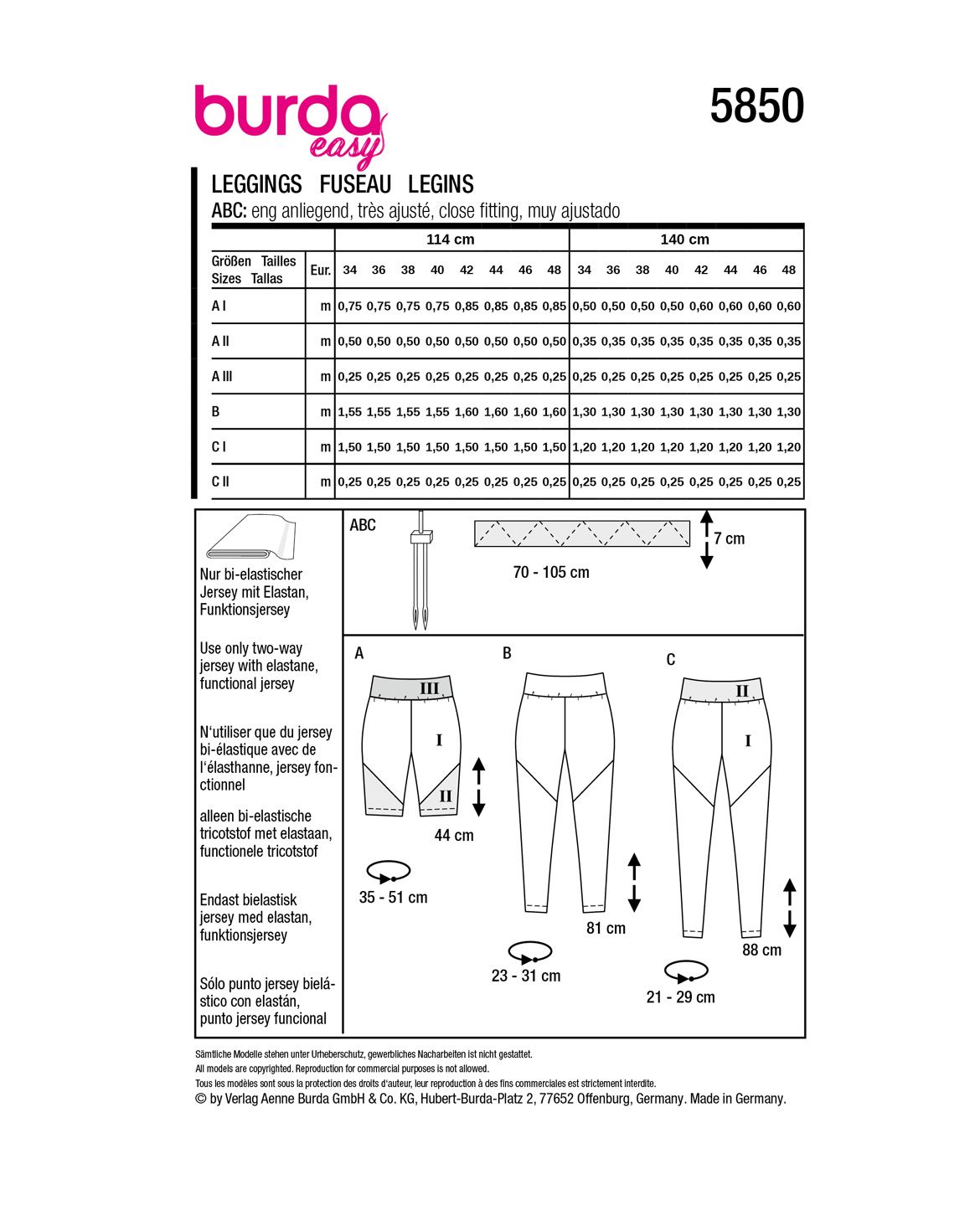 Schnittmuster Leggings Die Leggings in drei Längen mit schräger Teilungsnaht sind für Out- und... mehr