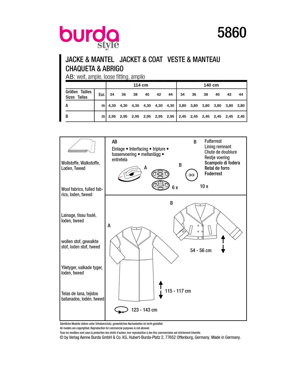 Stoffempfehlung: Wollstoffe, Walkstoffe, Loden, Tweed