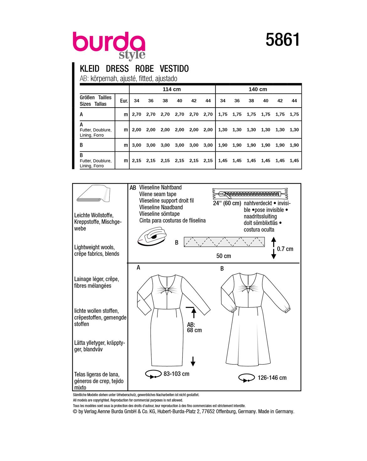 Stoffempfehlung: Leichte Wollstoffe, Kreppstoffe, Mischgewebe
