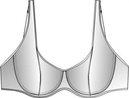 Zweigeteiltes Cup mit Vertikalnaht Cups werden in einen durchgehenden Rahmen eingesetzt angeschnittener Träger mit variabler Breite in der Schulterpartie auch ohne Bügel tragbar BH Linda Größengruppe 2 beinhaltet die Größen: 80A, 80B, 80C, 80D, 80E 85A, 85B, 85C, 85D, 85E 90A, 90B, 90C, 90D Materialverbrauch: Wäschestoff (mind.eine Richtung elastisch) : 0,50m Powernet: 0,20m x 1,80m Unelastischer Tüll/Einzugware: 0,25 x 0,45 0,80m Bügelband 1 Paar BBH-Bügel 1 Verschluss 1,20m Trägerband inkl. Versteller 2m Ziergummi 1,50m Unterbrustgummi 0,60m Einziehgummi