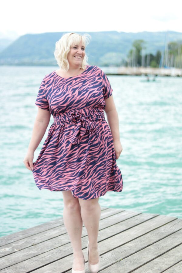 Aria ist ein luftiges Sommerkleid, das mit verschiedenen Ausschnittvarianten genäht werden kann, darunter ein rückwärtiger Tropfenausschnitt , der mit einem Knopf geschlossen wird. Durch ein Gummiband an der Teilungsnaht und einen optionalen Bindegürtel sitzt das Kleid figurnah. Die ebenfalls optionalen Taschen bieten Platz für Handy oder Kleingeld.