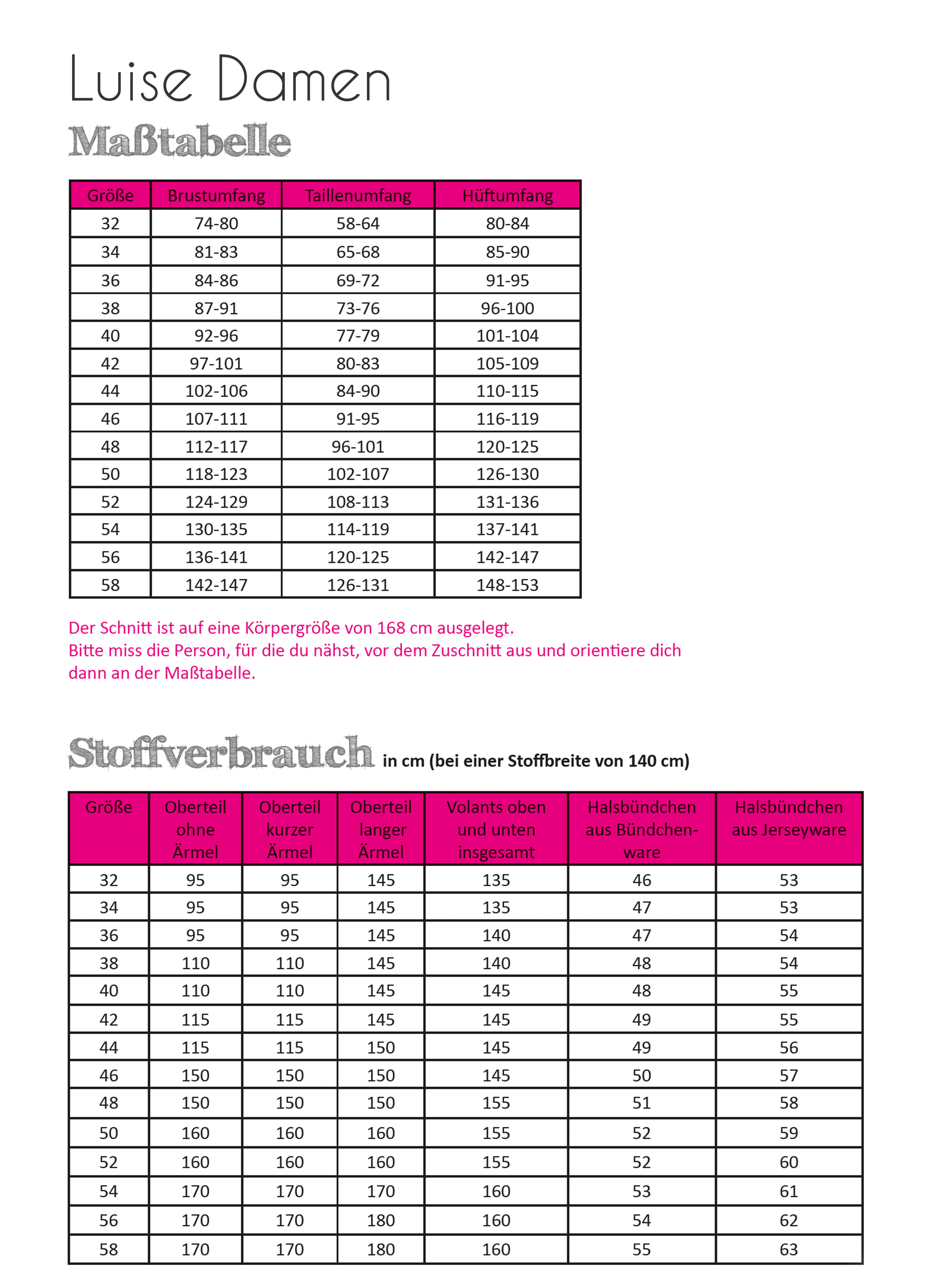 Luise ist ein Basicschnitt, der deiner Kreativität keine Grenzen setzt. Der Schnitt enthält drei verschiedene Armvarianten und kann als Kleid, Tunika oder Oberteil genäht werden. Wähle zwischen taillierter oder gerader Form.