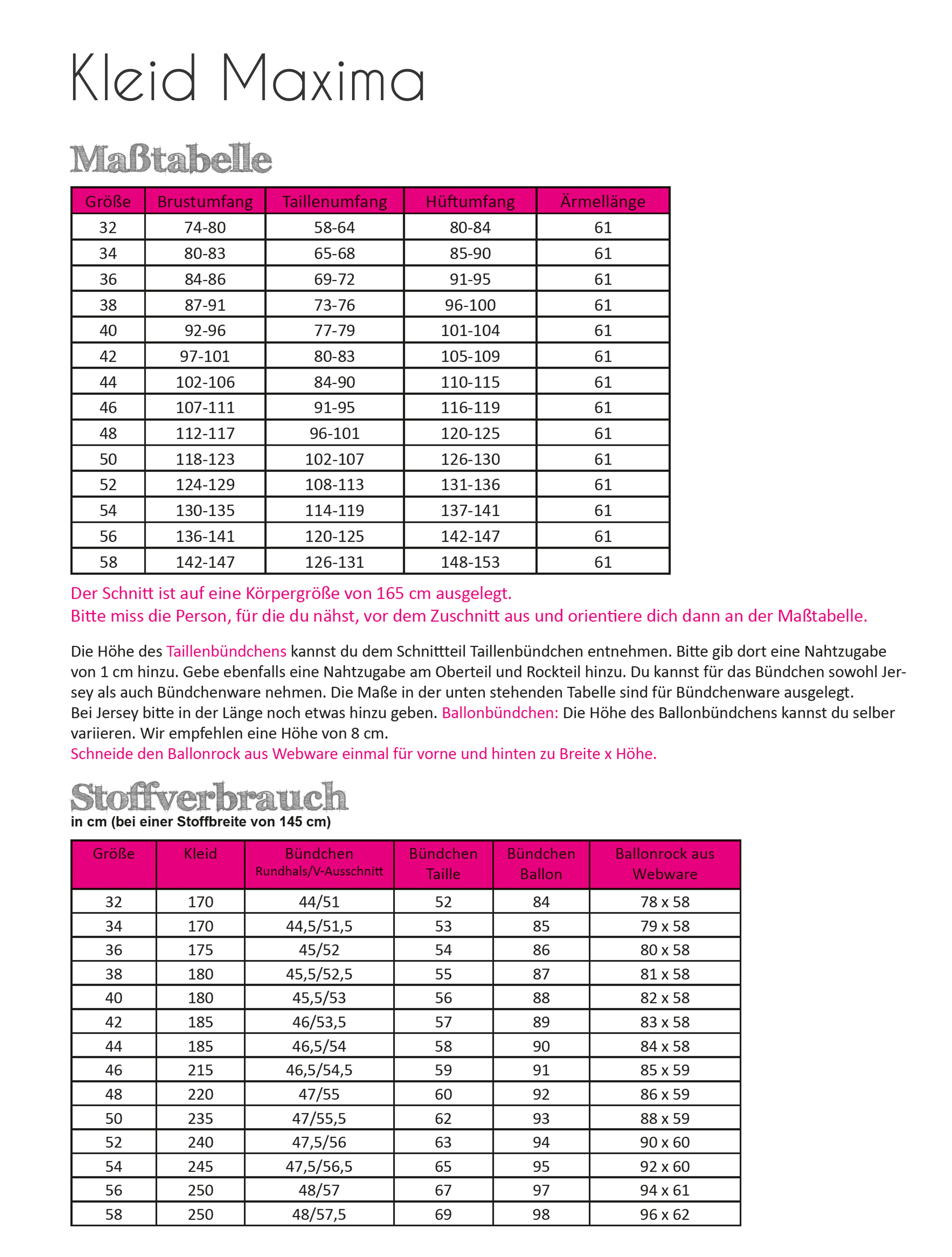 Der Schnitt Maxima behinhaltet 4 verschieden Nähvarianten und 2 verschiedenen Halsausschnitten. (Rundhals und V-Ausschnitt) Im Schnitt enthalten sind die Größen 32 bis 58. Maxima kann man mit kurzen, 3/4 und langen Ärmeln nähen, außerdem ist ein Tutorial für eine Stillvariante enthalten. Da ist für jeden etwas dabei, näh dir deine individuelle Maxima!