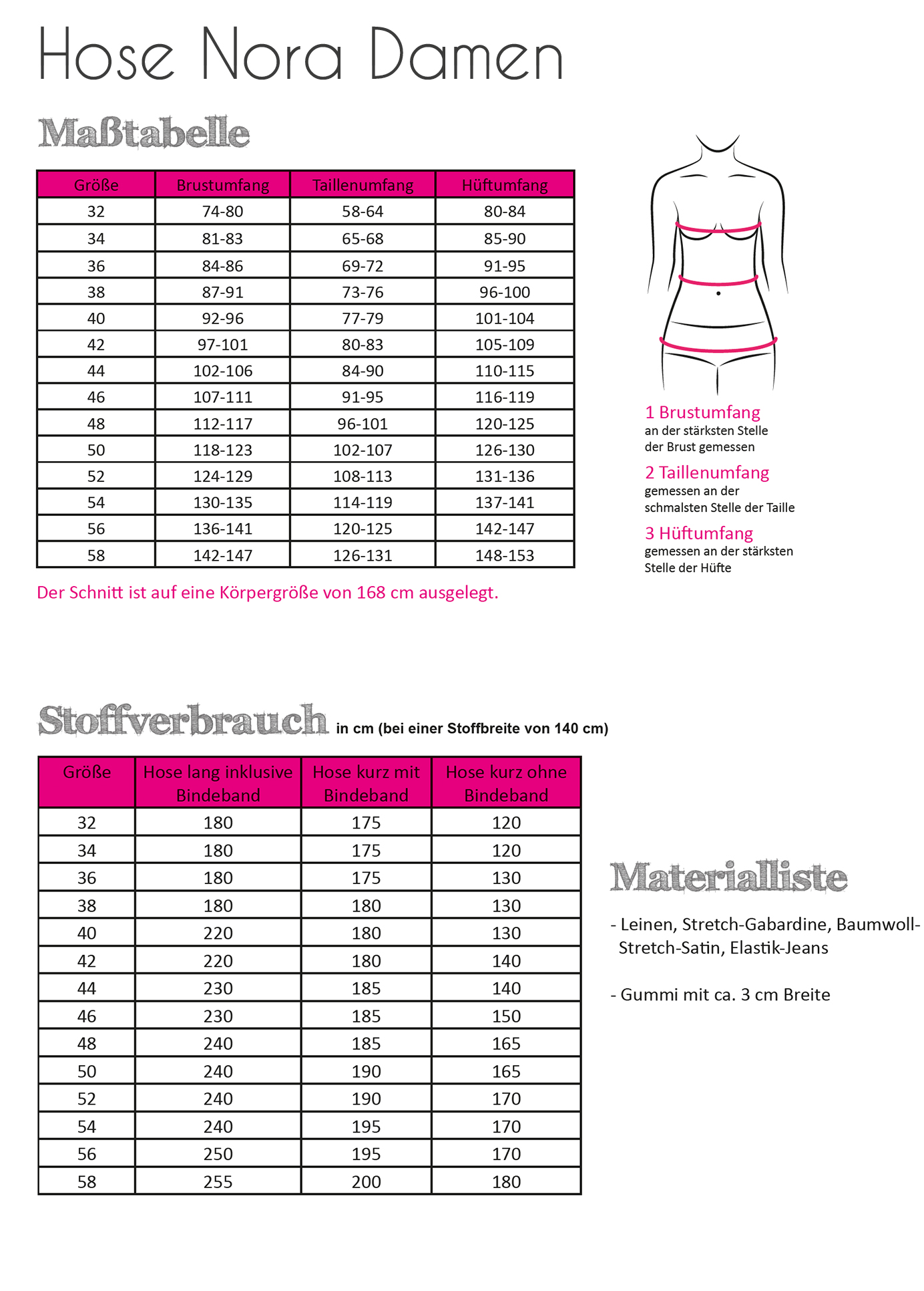 Das Schnittmuster enthält: