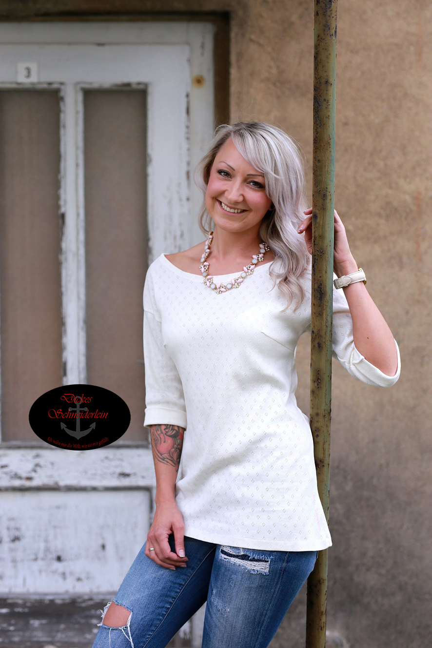 Dieser Schnitt beinhaltet die Anleitung und die Schnittteile, um einen Pullover, eine Tunika oder ein Shirt in leichtem Oversizelook und mit angesagtem Schwalbenschwanz zu nähen.