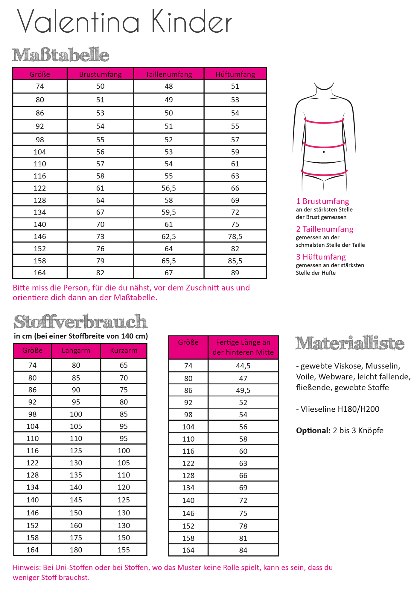 Stoffempfehlung: Viskose, Musselin, Voile leicht fallende Stoffe