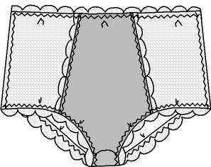 Vorder - und Hinterhose des Slips sind aus elastischer Wäscheware angefertigt, eine Teilungsnaht in der Vorderhose bietet Gelegenheit zu Material - und Musterkombinationen Verarbeitungsweise mit angestürztem Ziergummi, Einfassband und Badegummi möglich Bei der Anleitung zur Bade - Verarbeitung ist erklärt, wie man in die Längsteilungsnaht einen Paspel einsetzt Slip Marylin GG3 enthält die Grössen: 48 - 54 Materialverbrauch: Stoff 1: 0,50m Stoff 2: 0,50m Ziergummi, Einfassgummi : 6m ggf. Badegummi: 6m