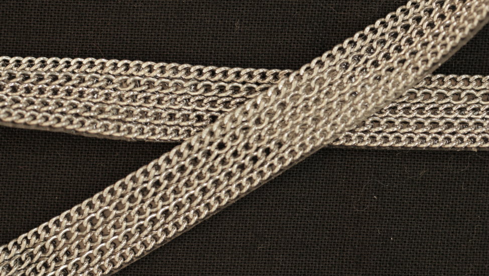 Aufbügelbares Band mit Metallketten zum Verzieren von aller Art Bekleidung, Taschen etc.